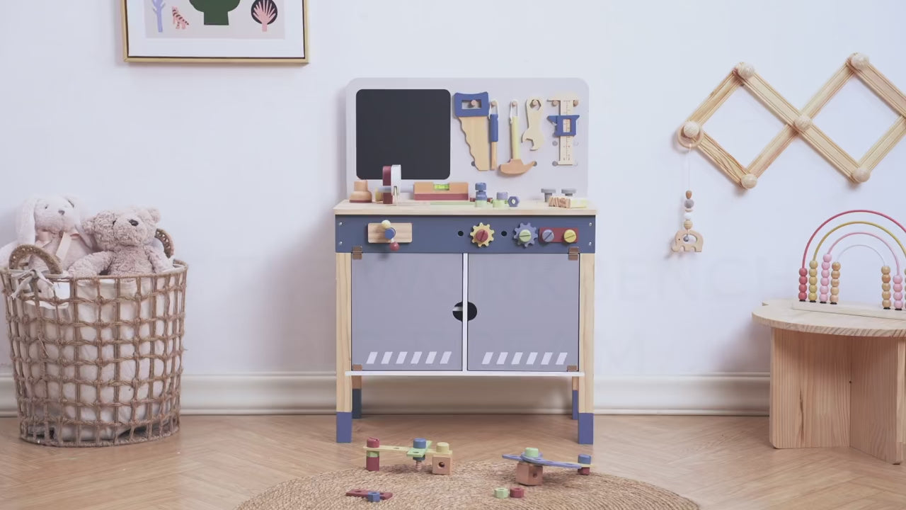 Interactive Play: More than just a wooden toy workbench—it's a world of creative play! Kids can team up with friends, building structures and stories together. The built-in chalkboard adds extra fun, allowing them to sketch plans and designs.